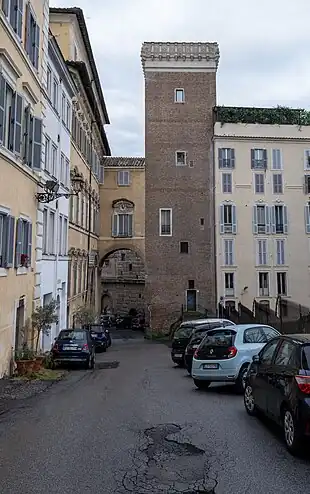 Construído no século XVII, tem uma bela fachada com um grandioso portão barroco e dois corpos avançados: o esquerdo, ligada à fachada por uma passagem arqueada chamada "dei Conti", tem cinco andares e incorpora uma antiga torre medieval inteiramente preservada; o direito tem três andares. A torre, também chamada de Torre della Miliziola para distingui-la da Torre delle Milizie, próxima e muito maior, foi construída em 1223 pela família Carboni. A torre passou depois para a família Conti e, em 1675, foi comprado pela família Grillo, que a incorporou ao palácio, acrescentando a coroação original com mísulas, como indicado pela inscrição comemorativa "EX MARCHIONE DE GRILLIS", o que lhe valeu o nome alternativo de Torre del Grillo[2]. O palácio passou em seguida para as mãos da família De Robilant[3].