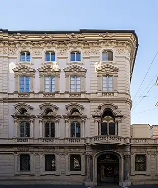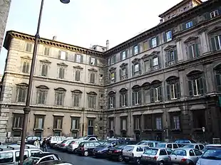 O arquitecto encarregado deste projecto foi Antonio Del Grande. A fachada voltada para a Via del Corso, no entanto, é de Gabriele Valvassori, que a realizou entre 1730 e 1735.
