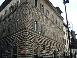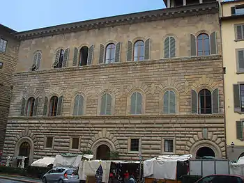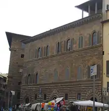 O palácio teve uma génese muito lenta e permaneceu incompleto durante vários séculos. No final do século XVII trabalhavam ali Antonio Maria Ferri, na arquitectura, e Matteo Bonechi, na decoração pictórica. Na Via dei Gondi, o palácio era flanqueado por um antigo edifício da família dos Asini, que foi demolido por volta de 1870 para alargar a estrada que ladeava o Palazzo Vecchio. Naquela ocasião o palácio também foi ampliado com a criação do terceiro portal ( o do lado esquerdo) e a construção duma nova "fatia" do edifício que aumentou o número de janelas na fachada e criou uma perspectiva semelhante na Via dei Gondi.