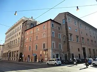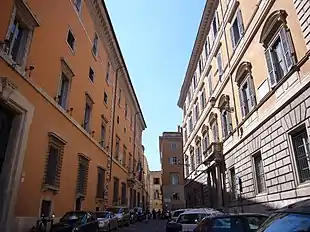 Das antigas habitações do século XV dos Mattei, restou apenas um pequeno edifício na esquina com a Via delle Botteghe Oscure, que se destaca por ostentar na fachada uma imagem conhecida como "Madonna della Provvidenza", antigamente conhecida como "Vergine nella piazza dell'Olmo" por causa da presença no local de um grande ulmeiro (em italiano: olmo) secular. Ela passou a ser particularmente venerada desde 1796, quando foi vista "chorando e movendo os olhos" por causa da invasão francesa aos Estados Papais, um efeito presenciado também em outras imagens pela cidade. Duas placas afixadas no local recordam o evento milagroso: uma delas diz "PASSEGGERO L'IMMAGINE CHE TU VENERI AVENDO IL 9 LUGLIO 1796 CON VARIO MOVIMENTO DEGLI OCCHI E ASPETTO BENIGNO CONFORTATO IL POPOLO SUPPLICANTE ATTRASSE A SE I CUORI E LODI DI TUTTI L'AMORE FILIALE POSE QUESTO RICORDO"[4]. A imagem está envolva por uma moldura ondulada em estuque, provavelmente do século XVII, e encimada por um baldaquino simples de madeira. A imagem, retangular, é uma pintura a óleo sobre tela e representa a Virgem Maria com as mãos cruzadas sobre o seio. Prova da veneração popular por esta imagem, todo o entorno da imagem estava tomado por ex-votos até a recente restauração do edifício e da imagem[4][3]. Na Piazza Paganica, em frente ao palácio, ficava a antiga igreja de Santi Sebastiano e Valentino, demolida pouco depois de 1870 para permitir a expansão do vizinho Palazzo Guglielmi Chiablese[3].