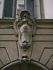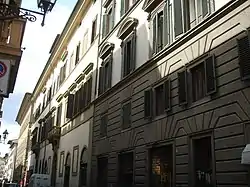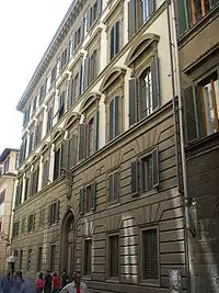 Na esquina direita, à altura do primeiro andar do palácio, encontra-se um belo tabernáculo em pietra serena, com cornija em estilo barroco e tímpano ornado por duas cabeças de querubins, apoiado por mísulas definidas por uma elaborada cartela. O breve vão, quase quadrangular, hospeda uma cópia de um baixo relevo em mármore, de Desiderio da Settignano, reproduzindo a Madonna col Bambino ("Nossa Senhora com o Menino"): o original encontra-se, desde 1921, no Museo Nazionale del Bargello. A fiel imitação, a dois terços do tamanho natural, é modelada com plena vivacidade e impõe à vista a Virgem sentada com o Menino Jesus sorridente no regaço.