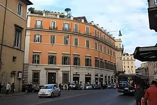 A maior parte dos edifícios na Via di Torre Argentina, a rua que marca a fronteira entre os riones, apresentam características do renascimento tardio, mas a pouca largura da rua torna difícil percebê-las[3]. Este palácio foi construído no século XVI para Luigi Roberti, membro de uma nobre família presente em Roma desde o século XII. Em 1675, ele foi vendido à duquesa de Poli, Lucrezia Colonna Conti, que o reformou. Um século depois, o edifício passou para Alessio Datti, da família Datti, de Cingoli, inscrita na nobreza italiana desde 1855. Sua fachada no Corso Vittorio Emanuele II só foi construída no final do século XIX[3][4].