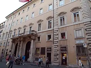 O palácio é resultado de uma ampliação de um edifício anterior que pertencia a Cavalier d’Arpino. As obras duraram quatro anos e terminaram em 1764, quando a coleção foi transferida para lá. Ela era composta por pinturas, esculturas, inscrições romanas e mármores antigos, entre as quais a Pietà Rondanini, de Michelângelo, adquirida em 1744 e hoje conservada no Castello Sforzesco em Milão.