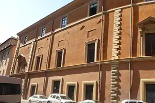 No final do século XV ficava no local um pequeno palácio de César Bórgia, um dos filhos do papa Alexandre VI (r. 1492–1503).[2][3] Mais tarde, o edifício passou para o cadeal Bartolomeo Della Rovere, um feroz adversário da família Bórgia.[2] Em 1565, este edifício foi demolido e um novo palácio foi construído por Averardo Serristori, embaixador do grão-duque da Toscana Cosimo I de' Medici na corte do papa Pio IV (r. 1559–65).[2][3][4] O edifício tornou-se a sede da embaixada da Toscana antes dela se mudar pra o Palazzo Firenze, no rione Campo Marzio, e permaneceu propriedade da família Serristori até 1821.[2]