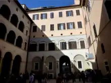 No pátio interno sobreviveu a ala direita do palácio renascentista original, com um pórtico do século XV e uma lógia com seis arcadas muradas na parte traseira do átrio de entrada: numa porta deste pátio resiste ainda hoje a inscrição "GAL. VICE CANCEL.", uma referência ao cardeal Galeotto Della Rovere, que restaurou o palácio na primeira metade do século XVI[2][3].