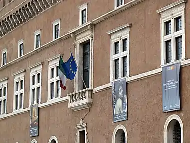 O palácio continuou servindo como residência papal até 1564, quando o papa Pio IV presenteou parte do edifício à República de Veneza por causa da origem do Paulo II. Uma seção do edifício passou a ser residência dos embaixadores venezianos e outra, a do cardeal-presbítero do título de São Marcos, da vizinha basílica de São Marcos[1]. Em 1797, depois que Napoleão conquistou Veneza, o edifício passou para o Império Austríaco para ser utilizado também como embaixada (a partir de 1867, do Império Austro-Húngaro). Em 1916, durante a Primeira Guerra Mundial, o palácio foi confiscado pelo estado italiano e, em 16 de setembro de 1929, Benito Mussolini instalou ali seu próprio quartel-[5] na Sala del Mappamondo (vide abaixo)[4]: durante todos os anos do fascismo, as luzes desta sala jamais eram apagadas para passar a mensagem de que o governo jamais descansava. Era do balcão do Palazzo Venezia, o mesmo utilizado por Paulo II para apreciar a corsa, que Mussolini se dirigia às multidões nas ocasiões mais importantes, como em 1940, quando a Itália declarou guerra à França e ao Reino Unido dando início à participação do país na Segunda Guerra Mundial[4].