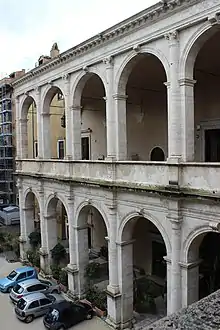 No palácio propriamente dito, construído a partir de 1466, se percebe uma estrutura mais fiel aos modelos antigos que testemunha uma profundidade da compreensão de evolução mais gradual. O vestíbulo com teto em caixotões é o primeiro exemplo de utilização na arquitetura moderna de concreto no estilo antigo, com cimbres e moldes, lembrando o Panteão ou a Basílica de Maxêncio[7].