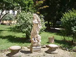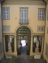 No piso térreo, depois do átrio, encontra-se um pátio decorado ao centro com um "Hércules que luta contra o leão" (Ercole che lotta contro il leone), talvez de Giovanni Baratta; nos lados, dentro de nichos, encontram-se um Apolo e uma Diana.
