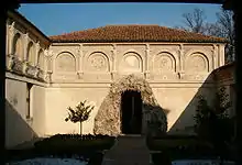 Tal como acontecia na Villa Farnesina (em Roma, no bairro do Trastevere), a localização extra-muros permitia uma arquitetura simultaneamente de palácio e de villa romana.