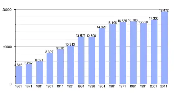 | Variação demográfica do município entre 1861 e 2011[3] |