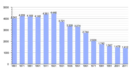 | Variação demográfica do município entre 1861 e 2011[3] |