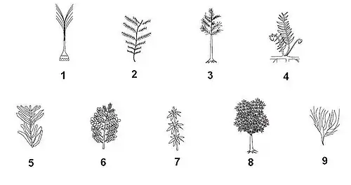 Grupos taxonômicos reconhecidos na flora fóssil do Rio Grande do Sul: [5] [6] [7] [8] [9] [10] [11] [12] [13] [14]