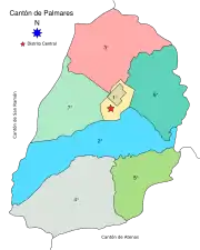 ![]() Localização do cantão de Palmares na província de Alajuela. | |||