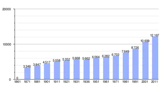 | Variação demográfica do município entre 1861 e 2011[3] |