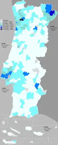 ![]() Mapa dos municípios com casos de COVID-19 em 26 de outubro de 2020, durante a segunda vaga da pandemia em Portugal