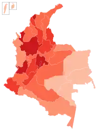 ![]() Mapa da pandemia de COVID-19 na Colômbia | |