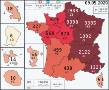 Segundo os achados de um time de epidemiologistas franceses, em maio de 2020, cerca de 2,8 milhões de pessoas, ou aproximadamente 5% da população da França, pode ter sido infectada com COVID-19.[5]