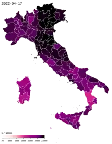 Em 31 de janeiro de 2020 foi confirmado que a pandemia de COVID-19 tinha se espalhado para a Itália, quando dois turistas chineses deram positivo para SARS-CoV-2 em Roma.[1] Um conjunto de casos de COVID-19 foi detectado posteriormente, começando com 16 casos confirmados na Lombardia em 21 de fevereiro,[2] outros 60 casos em 22 de fevereiro, e as primeiras mortes da Itália relatadas no mesmo dia.