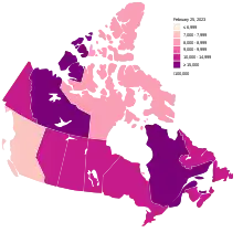 Em 24 de fevereiro de 2020, foram notificados 11 casos de coronavírus no Canadá, todos na Colúmbia Britânica (7 casos) ou em Ontário (4 casos). Todos os casos tinham histórico recente de viagens para um país com um número substancial de casos de coronavírus. Desses casos, oito (5 em BC, três em Ontário) recuperaram.[2]