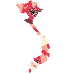 Com uma população de quase 100 milhões de pessoas, recebendo milhões de visitantes chineses a cada ano, tendo uma longa fronteira terrestre e fortes laços econômicos com a China,[26][27] que é o maior parceiro comercial de Hanói,[28][29] o país foi inicialmente visto como atingido pela pandemia. Quando o Vietnã registrou seus dois primeiros casos confirmados em 23 de janeiro de 2020, estava entre os primeiros países afetados pelo COVID-19.[30] Duas semanas depois, apenas 150 casos foram relatados fora da China continental, mas dez deles foram no Vietnã, colocando-o entre os dez países mais afetados. Porém, um ano depois, a situação era muito diferente: em vez de ter um surto em grande escala, o Vietnã era um dos países com os menores casos e mortalidade por milhão de habitantes.[31]