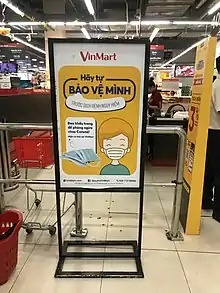 Em fevereiro de 2020, o Ministério da Educação e Treinamento do Vietnã suspendeu todas as atividades escolares em todo o país até o final de março como parte das medidas de quarentena contra a propagação do vírus, e posteriormente estendeu até meados de abril até novo aviso.[138] Medidas agressivas também foram tomadas para combater possíveis surtos, de quarentena de 14 dias à restrição de atividades ao ar livre.[139] As Forças Armadas do Povo do Vietnã também participam do patrulhamento e da execução das medidas de controle.[140] Sessenta e oito acampamentos militares com capacidade para 40.000 pessoas foram montados para receber pessoas colocadas em quarentena.[141] Em 9 de fevereiro, o Ministério da Saúde realizou uma teleconferência com a OMS e 700 hospitais em todos os níveis em todo o país para divulgar informações sobre a prevenção de nCoV e lançou um site para divulgar informações ao público em geral.[142][143] O primeiro caso de quarentena em massa no Vietnã ocorreu em 12 de fevereiro em Sơn Lôi, Vĩnh Phúc, uma comunidade de 10.000 pessoas. Foi uma restrição por 20 dias devido a sete casos de coronavírus - o primeiro bloqueio em grande escala conhecido fora da China.[26] A ação preventiva agressiva permitiu que o Vietnã contivesse o surto, com apenas 16 casos, todos recuperados, até o final de fevereiro.