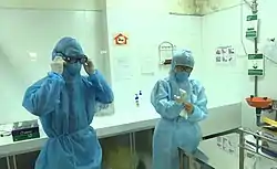 [114] Em março de 2021, o Vietnã tinha 157 laboratórios capazes de testar COVID-19 usando RT-PCR. A capacidade máxima do país (março de 2021) é por volta de 62.593 exames por dia.[115][116] Durante o surto em Hải Dương, em vez de testes em massa, as autoridades usaram diferentes estratégias, incluindo testes direcionados a grupos de maior risco, bem como testes aleatórios de domicílios e pacientes internados. A capacidade de teste também pode ser aumentada com o agrupamento de amostras de baixo risco, até 10 amostras no máximo.[117]