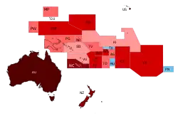 | Local | Oceania, com 21 países e territórios |