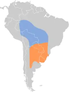 Pode ser encontrada nos seguintes países: Argentina, Bolívia, Brasil, Colômbia, Paraguai, Peru e Uruguai.