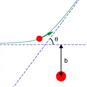 Parâmetro de impacto b e ângulo de dispersão θ.