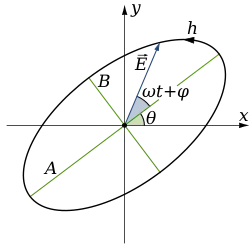 As ondas planas monocromáticas são especificadas pelo vetor de propagação , , e suas amplitudes complexas do campo elétrico , e , com as bases . O par é chamado de vetores de Jones. Em alternativa, pode-se especificar o vetor de propagação, a fase, , e o estado de polarização, , onde é a curva tracejada fora do campo elétrico como uma função do tempo contido em um plano fixo. Os mais familiares estados de polarização são linear e circular, casos que são degenerados do estado mais geral, a elipse.