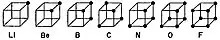 Em uma ligação tripla entre carbonos, este modelo era um pouco diferente, os pares de elétrons estariam em um tetraedro, pois as disposições em cubo não atendiam a este tipo de ligação por causa da estereoquímica.[4]
