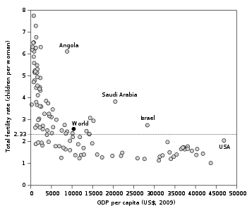 O paradoxo demográfico-econômico é a correlação inversa encontrada entre riqueza e fertilidade dentro e entre nações. Quanto maior o grau de educação e o PIB per capita de uma população, subpopulação ou estrato social humano, menor a quantidade de nascimentos de crianças em todo o país industrializado. Em uma conferência populacional da Organização das Nações Unidas (ONU) em 1974 em Bucareste, Karan Singh, um ex-ministro populacional da Índia, ilustrou essa tendência ao afirmar que "o desenvolvimento é o melhor contraceptivo".[1]