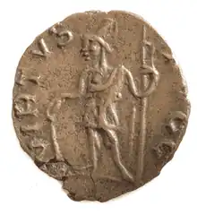 Na mitologia romana, figura amiúde às mãos do deus Virtude, máxime, nas representações mais antigas. Em representações mais tardias, já começou a ser asida por Marte ou mesmo pela deusa Roma, a fim de imbuir as suas representações com uma aura de coragem belicosa.[10]