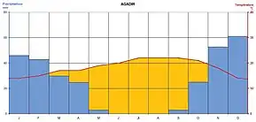 | Temperatura máxima média (°C) | 20,2 | 21,1 | 22,4 | 22,1 | 22,7 | 23,9 | 25,4 | 25,8 | 26,7 | 25,3 | 23,6 | 21,3 | 23,2 |