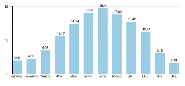 A temperatura média nos últimos cinco anos foi de 11,1°C, e a precipitação anual foi de 1053,6 milímetros. Os últimos anos foram excepcionalmente úmidos.