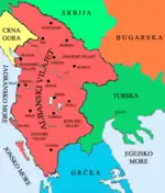 - Este artigo foi inicialmente traduzido, total ou parcialmente, do artigo da Wikipédia em inglês cujo título é «Partition of Albania».