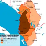 As fronteiras da Albânia, estabelecidas em 1913, deixaram um grande número de cidadãos de etnia albanesa fora do novo estado e muitos deles fugiram ou foram forçados a se dirigirem para dentro das fronteiras reconhecidas da Albânia. [21] No Kosovo, as tropas sérvias tentaram alterar a demografia através de expulsões em massa. Mais de 100 000 albaneses emigraram de Kosovo durante os anos 1918 e 1941. [22][23]