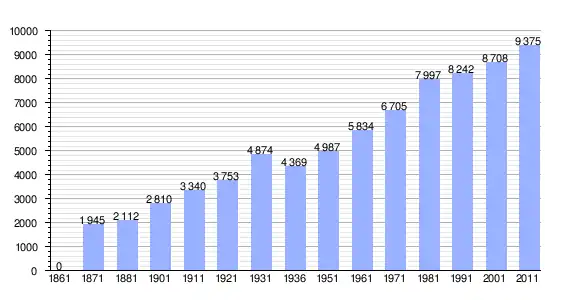 | Variação demográfica do município entre 1861 e 2011[3] |