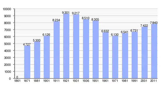 | Variação demográfica do município entre 1861 e 2011[3] |