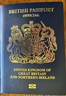 ![]() Capa do passaporte biométrico britânico atual | |