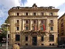 É o edifício situado na esquina em frente ao Palácio de Navarra, que também dá para a Avenida de Santo Inácio. Obra dos arquitetos José Astiz e José Yárnoz Larrosa, foi edificado entre 1925 e 1927. De estilo clássico, conforme mandavam os usos desse tempo para edifícios institucionais em Espanha, com proporções equilibradas, como que refletindo o neoclassicismo do palácio vizinho. Na zona mais nobre é destacada por quatro colunas no frontão que dá para o passeio e por pilastras na fachada que dá para a avenida. O conjunto tem um ar mais ligeiro que o palácio por usar ordem jónica em vez da dórica do palácio. A mansarda de ardósia difere da arquitetura burguesa francesa onde este elemento arquitetónico é muito usual.