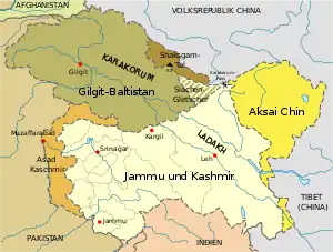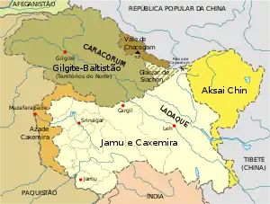 ![]() Mapa de Caxemira com o passo de Caracórum assinalado | |