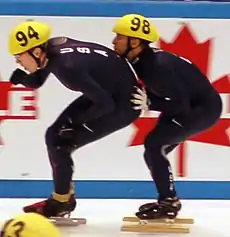 ![]() Patinadores posicionados para a largada de uma prova nos Países Baixos, em 2006 | |