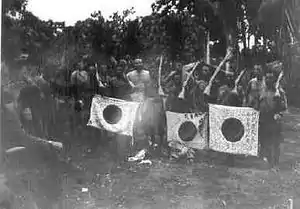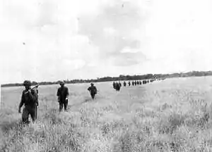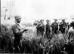 ![]() Nativos das Ilhas Salomão guiando os Marines americanos que perseguiam as forças japonesas em Guadalcanal, novembro de 1942. | |||