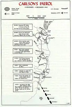 - Smith, Carlson's Raid, p. 201, Peatross, Bless 'em All, p. 164–165, Hoffman, Long Patrol.