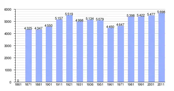| Variação demográfica do município entre 1861 e 2011[3] |