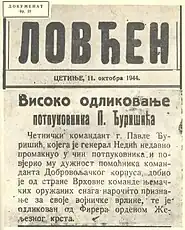 Em 11 de outubro de 1944, por sugestão de von Weichs, Wilhelm Keiper, o Plenipotenciário Geral Alemão em Montenegro, concedeu a Đurišić a Cruz de Ferro (2ª Classe) em nome do Führer e do Alto Comando Alemão pela luta contra os Partidários. [122]