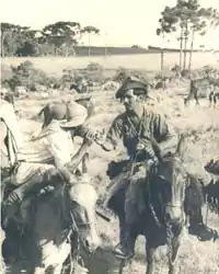 Muitos latifundiários dedicaram-se ao rendoso negócio de comprar muares no Rio Grande do Sul, inverná-los nos campos paranaenses e revendê-los nas feiras de Sorocaba. Assim surgiu os Caminhos das Tropas, dando início a um importante ciclo econômico no Paraná, o tropeirismo.[9][10][11][12] Na primeira metade do século XVIII, após a abertura da estrada do Sul por volta de 1733, a passagem crescente de tropas envolveu e atraiu no comércio cada vez mais pessoas nos planaltos paranaenses. Os fazendeiros no Paraná participavam da venda de tropas, buscando muares e cavalos sulinos. Esse comércio rapidamente incentivaria a formação de novos latifúndios, seja para alugar pastos, para criação e venda de animais, ou, com mais frequência, ambas.[9]