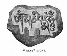 No budismo, a pedra Chintamani é considerada uma das quatro relíquias que vieram em um baú que caiu do céu (muitos termas caíram do céu em caixões) durante o reinado do rei Lha Thothori Nyantsen do Tibete. Embora o rei não entendesse o propósito dos objetos, ele os mantinha em uma posição de reverência. Vários anos depois, dois estranhos misteriosos apareceu na corte do rei, explicando os quatro relíquias, que incluíram tigela do Buda e uma pedra mani com o mantra om mani padme hum inscrito nele. Esses poucos objetos foram os portadores do darma para o Tibete.