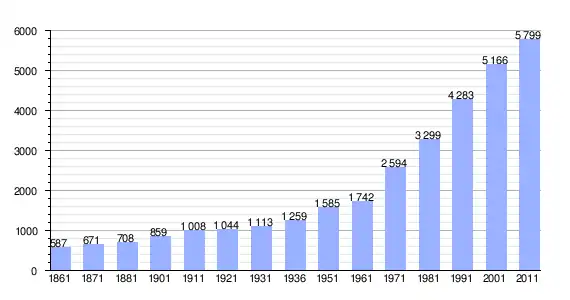 | Variação demográfica do município entre 1861 e 2011[3] |